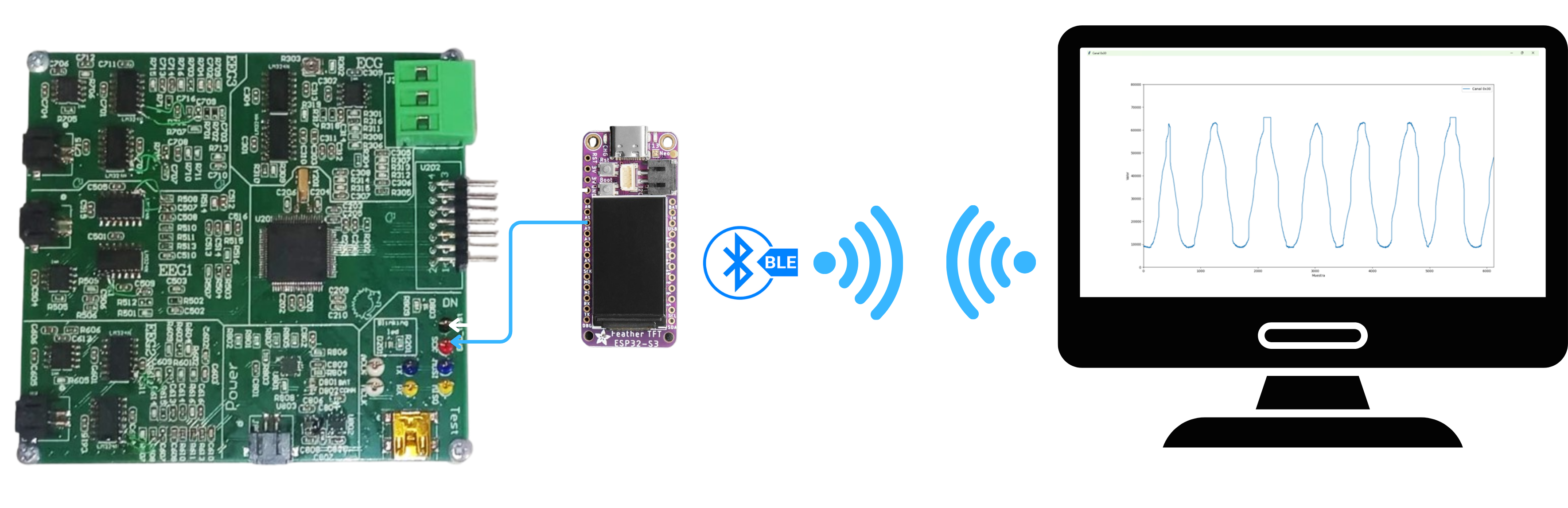 - Establishes a connection with the bridge layer and displays the data received via BLE on a device screen, such as a laptop.